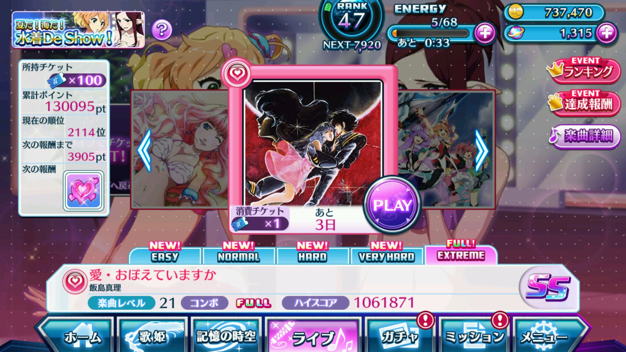芙蕾雅熟練度上4了,CM曲要刷what'bout my star啊…那換人繼續刷好了