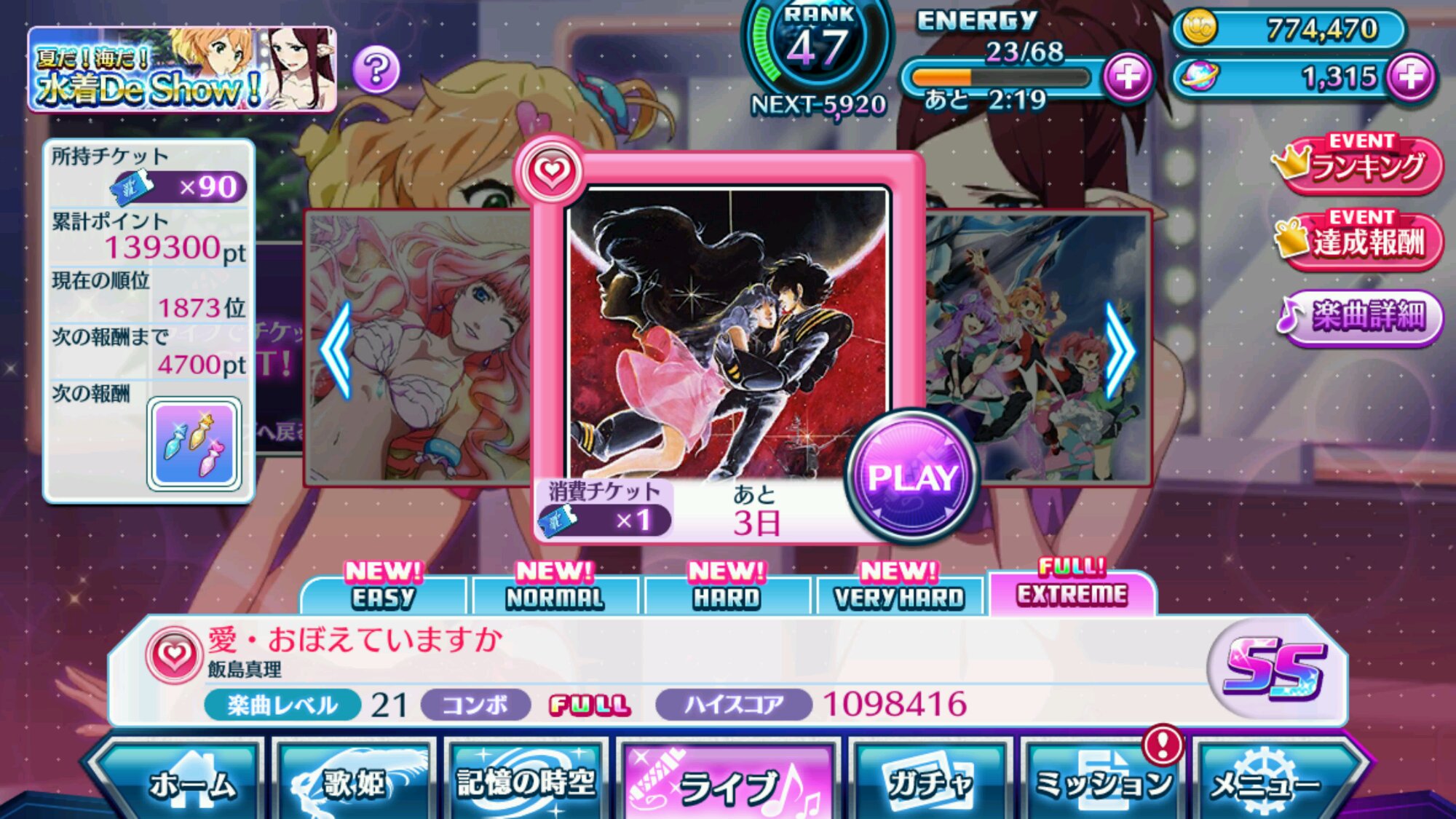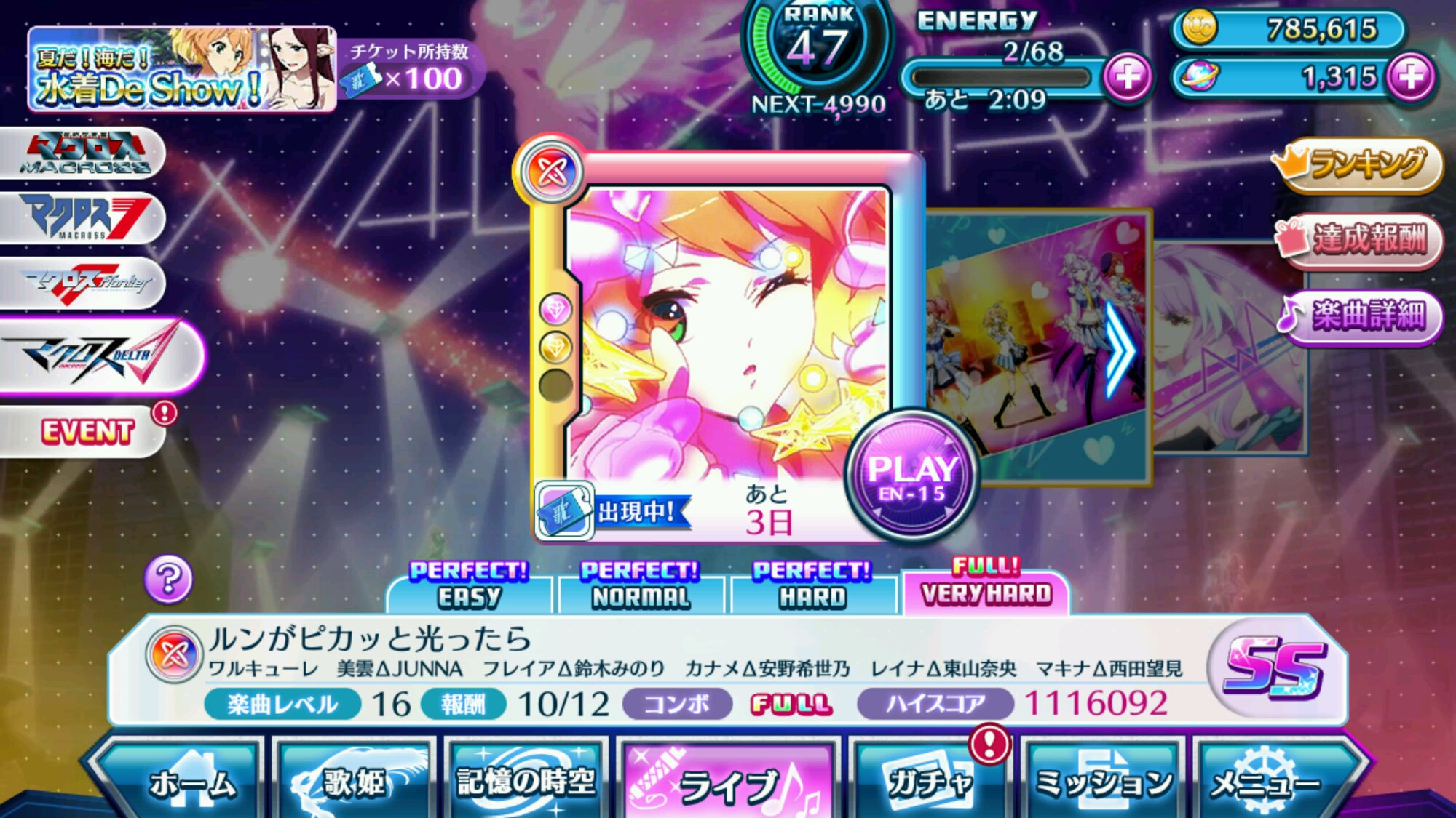 4點多的時候一口氣抽了兩發10連,沒出S級total up,有點心酸,想要It's show time覺醒,只能繼續刷hard湊歌晶石了