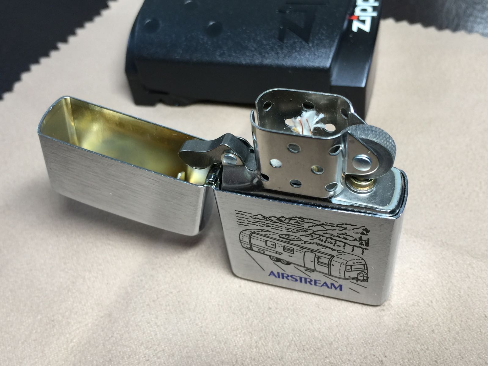 【具体描述】全新2004年8月 AIRSTREAM 清风房车,蚀刻填漆。机身极轻微存储擦丝,原配全新04G内胆,同期黑塑盒包装。