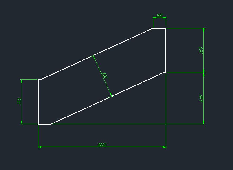 你说的是下面1000的尺寸吗。这样理解吧。你从左往右画一条1000的线再向上画400的线。两条350的垂线不就好画了?