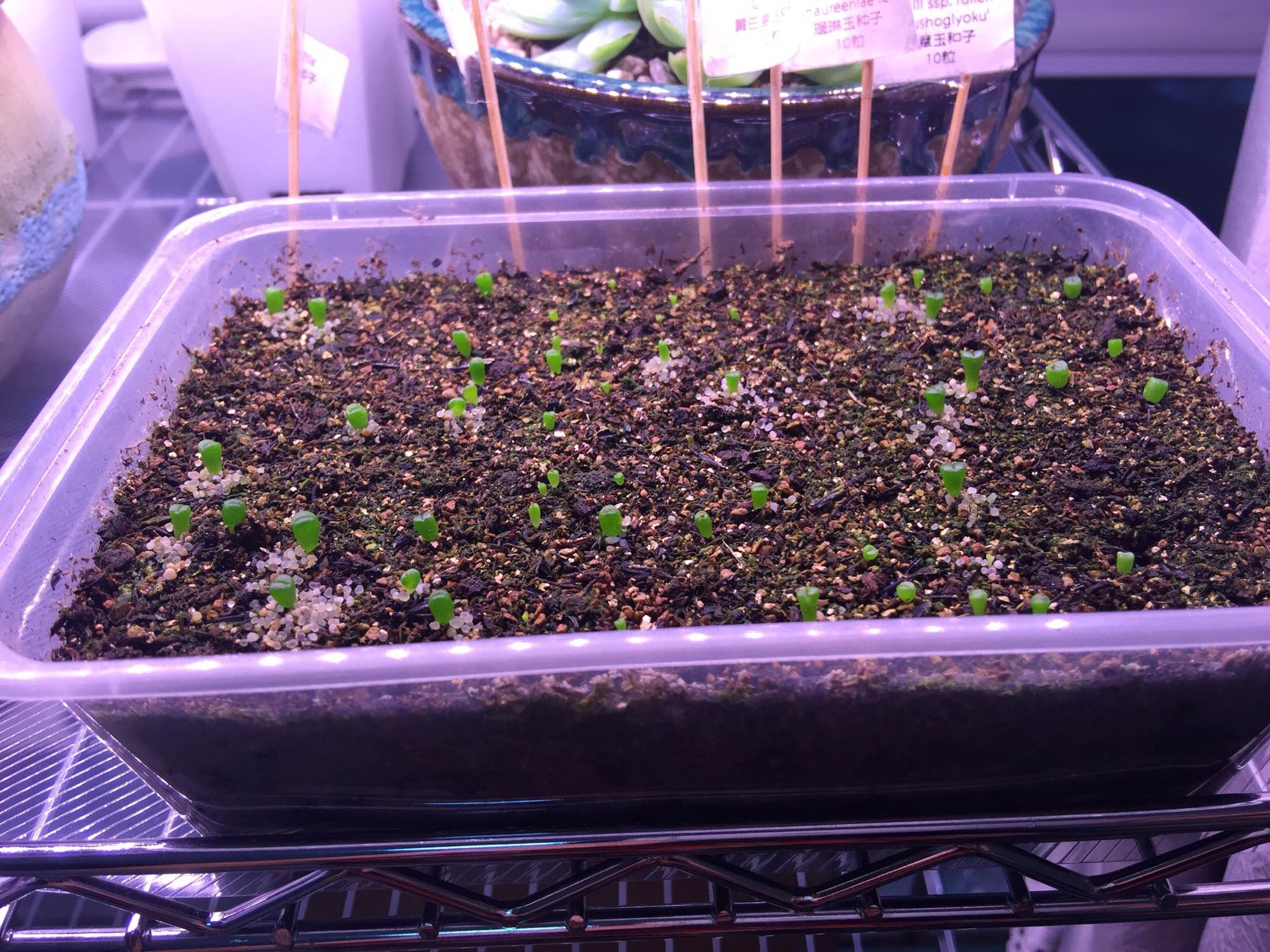 更新发芽现状 目前混合170出了70 隔几天有新的出来 编号也出了新的 后来播种的三盆荒也出芽了 荒出芽70%左右 苗苗在逐渐变胖最开始出的几颗变色了