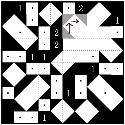 在盘面中涂黑一些◢, ◣, ◤,◥样式的三角形,