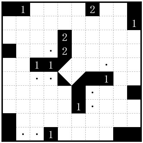 提示数表示其上下左右格被涂黑的数量。