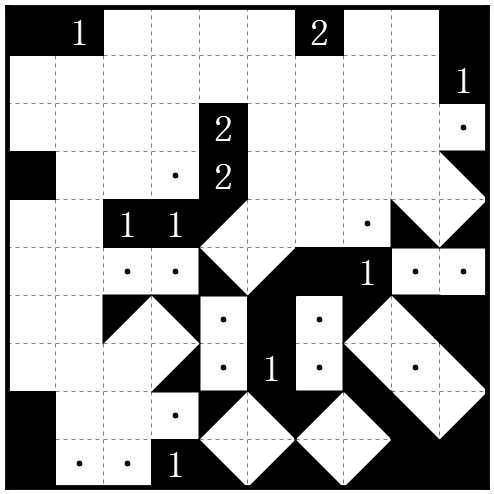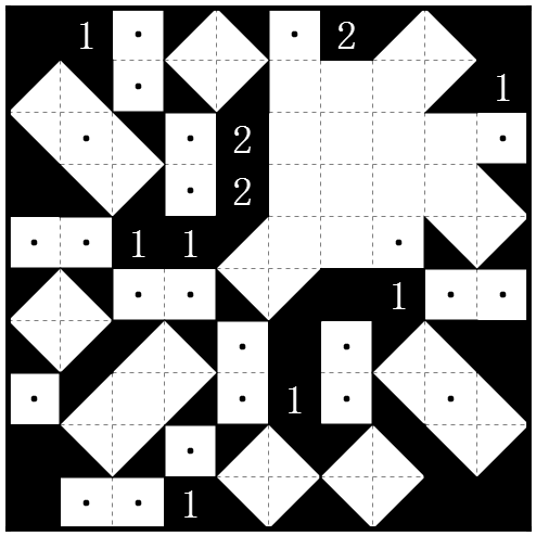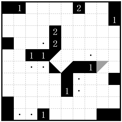 规则:https://tieba.baidu.com/p/4686992394在盘面中涂黑一些◢, ◣, ◤,◥样式的三角形,