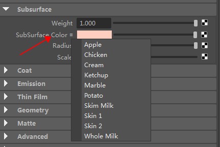 在这个材质球aiStandardSurface的预设可以调出来