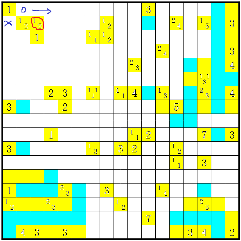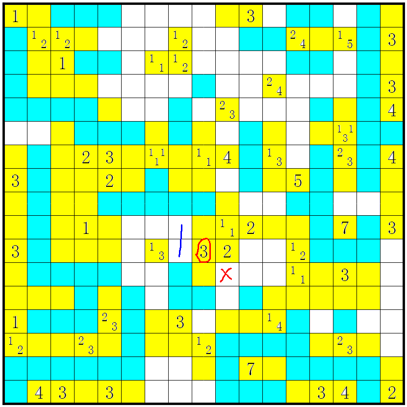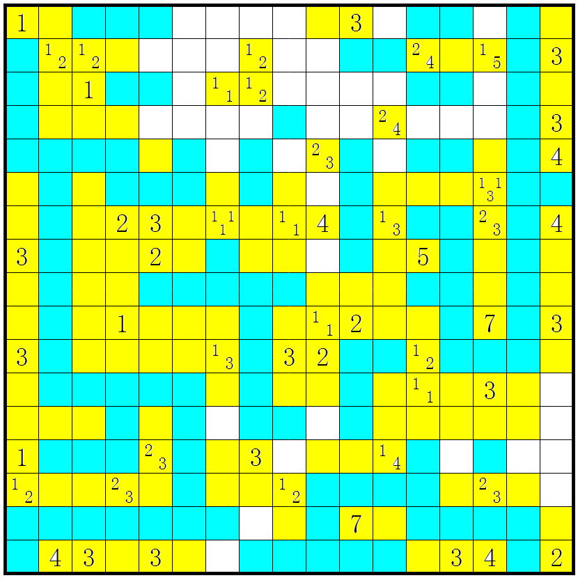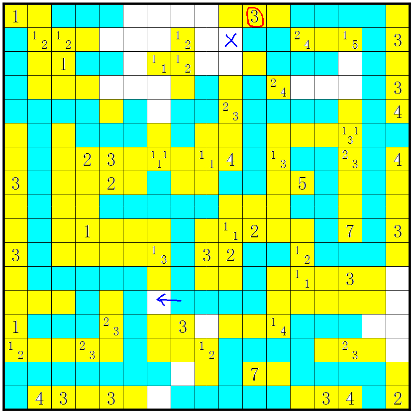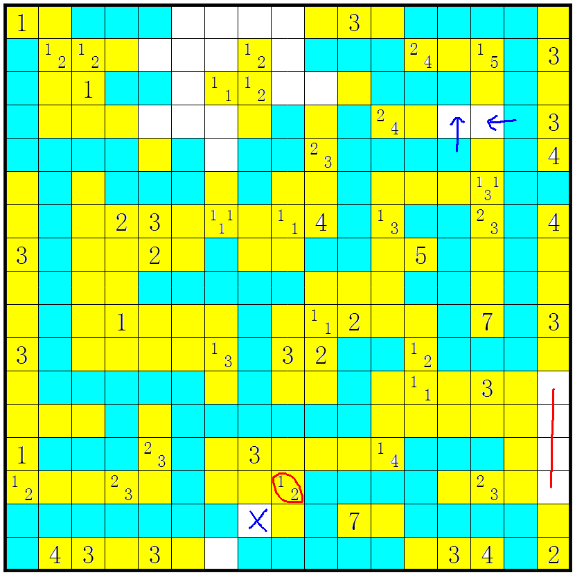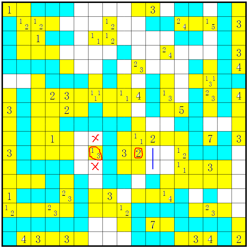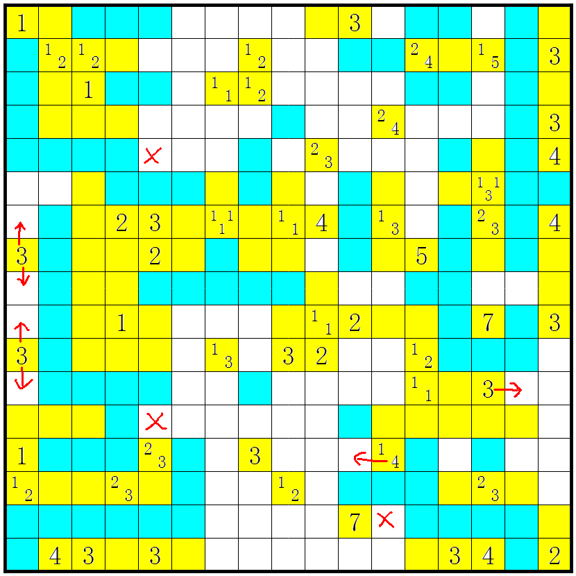 3、几个方格包含数字或问号;这些方格不要涂上;