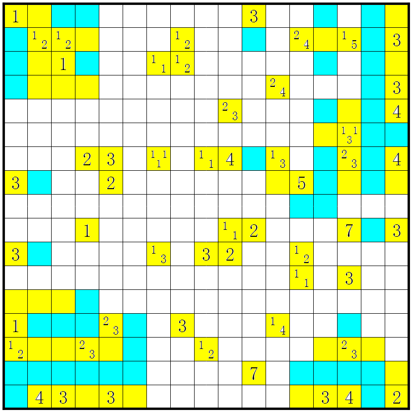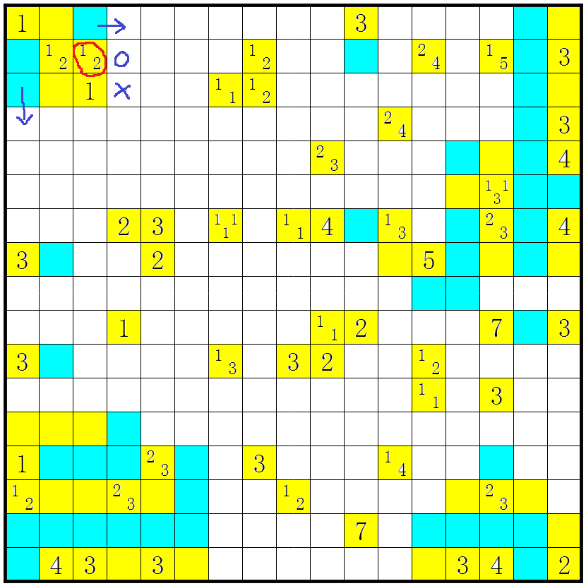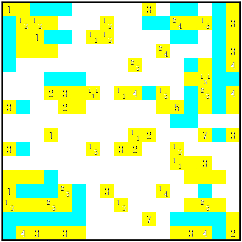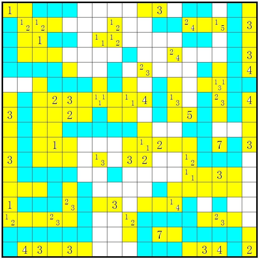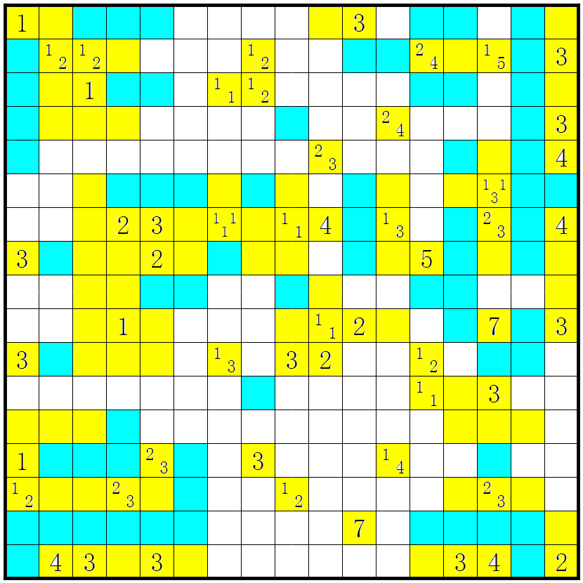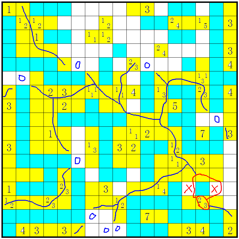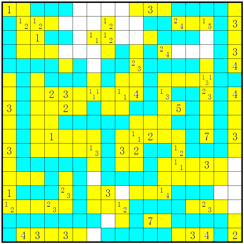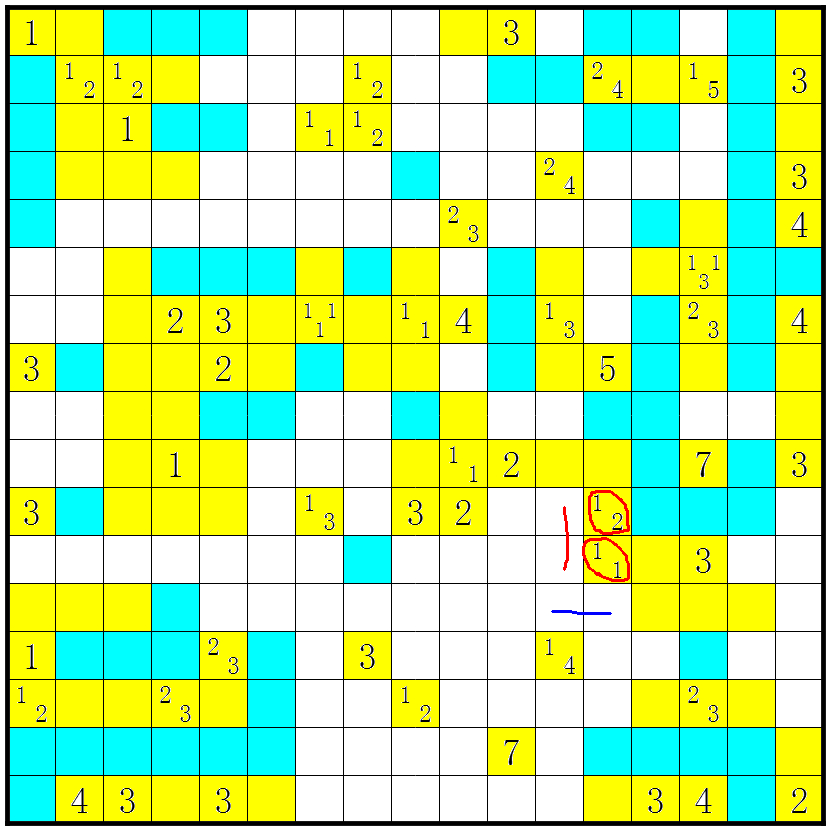 3、几个方格包含数字或问号;这些方格不要涂上;