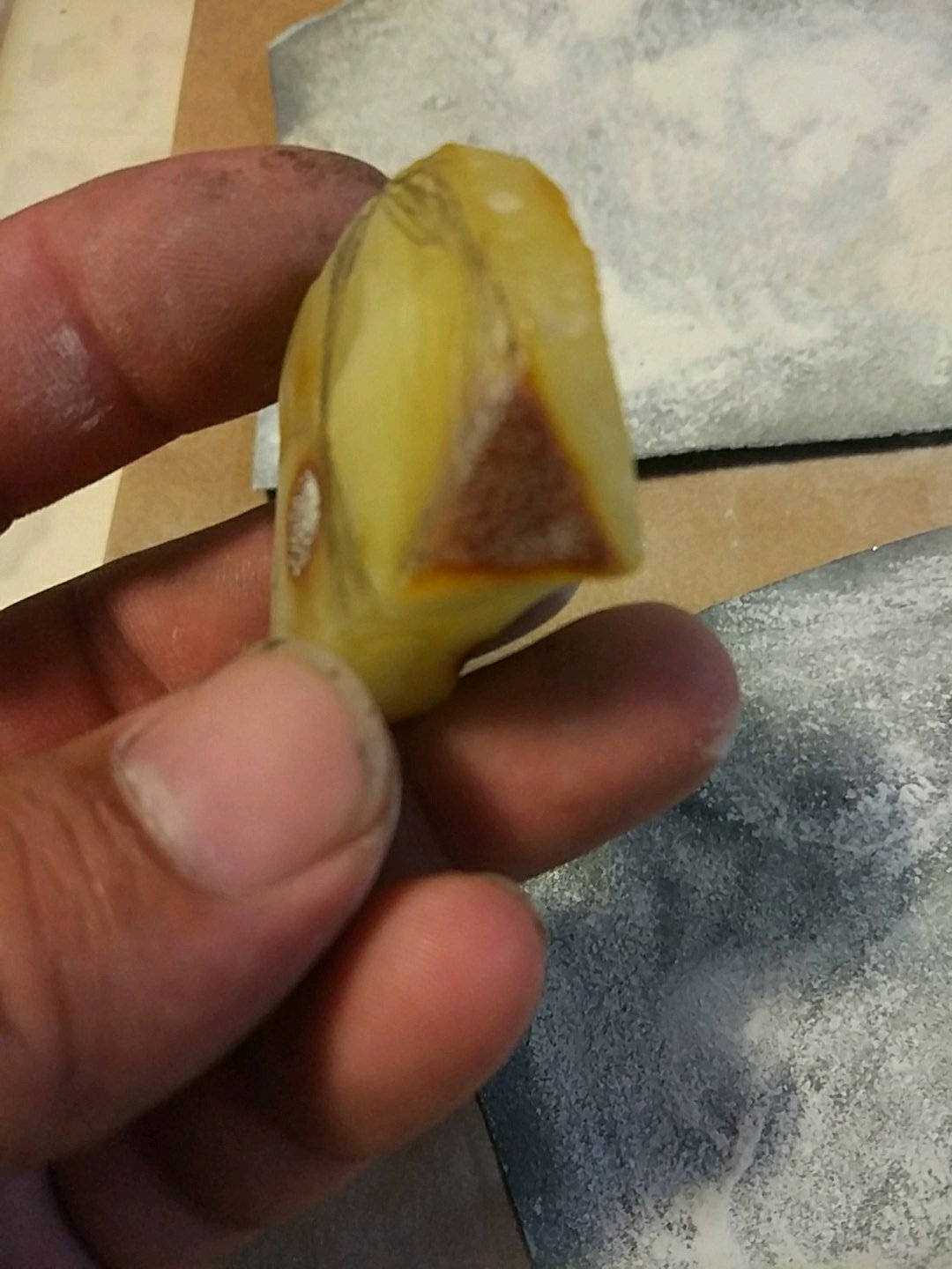 形状不错啊,切了可惜了。扔给雕刻师傅,能出个不错的挂件。