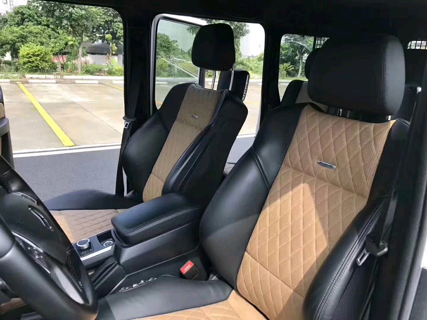 特价83.8万!现货2015款奔驰G63 AMG V8 5.5T 白色双色格子内 多功能桃木方向盘 LED大灯 天窗 换档拨片 ACC防撞 超车辅助 3把差速锁 通风加热电椅 倒车影像 后排娱乐 配置齐全!