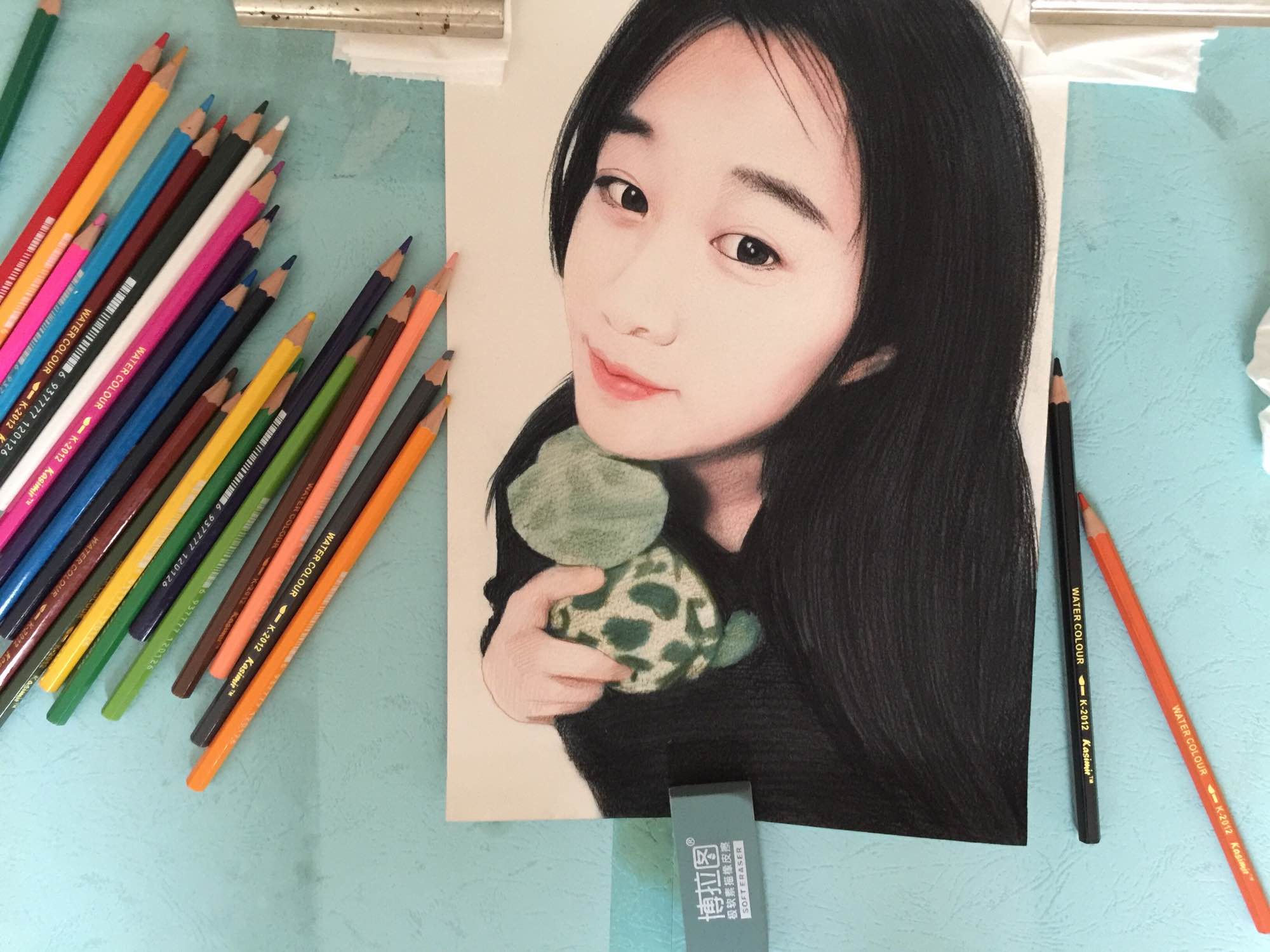头发底色我用水彩画,等干了后再用铅笔勾勒