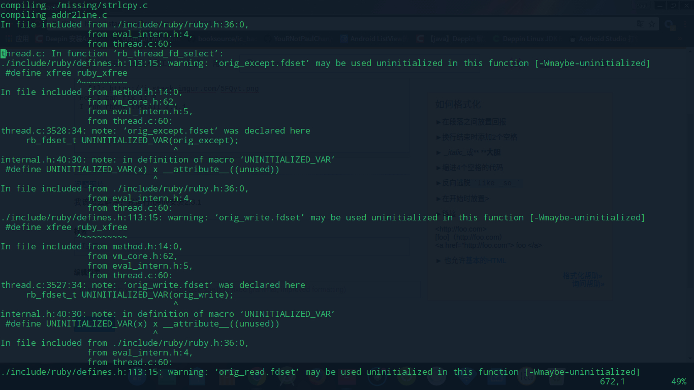 在deepin15.4上安装的时候出现了这种错误(部分错误日志截图)