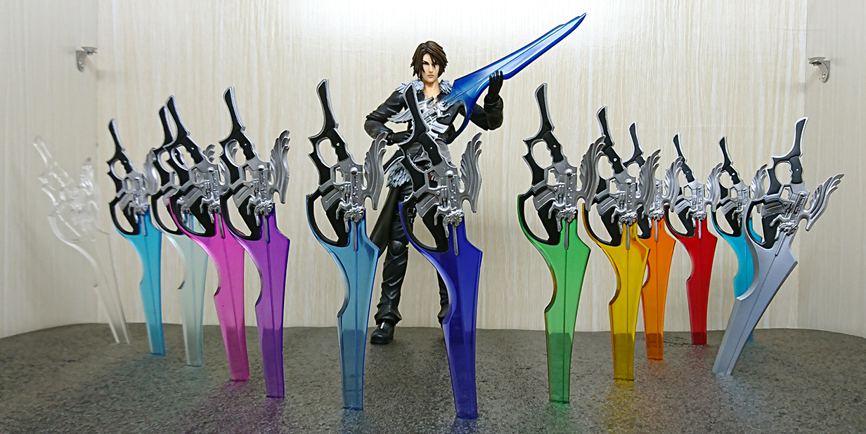 左边创世剑是3D打印的,右边狮子之心是用环氧树脂翻模的,刀刃做的透明蓝色来还原游戏中设定,其它颜色纯属个人恶搞玩的,官方出的武器是银灰刀刃并不还原设定