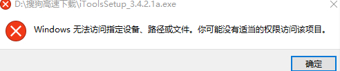请在官方下载程序,此外换个盘符,并确认您电脑权限是否受限