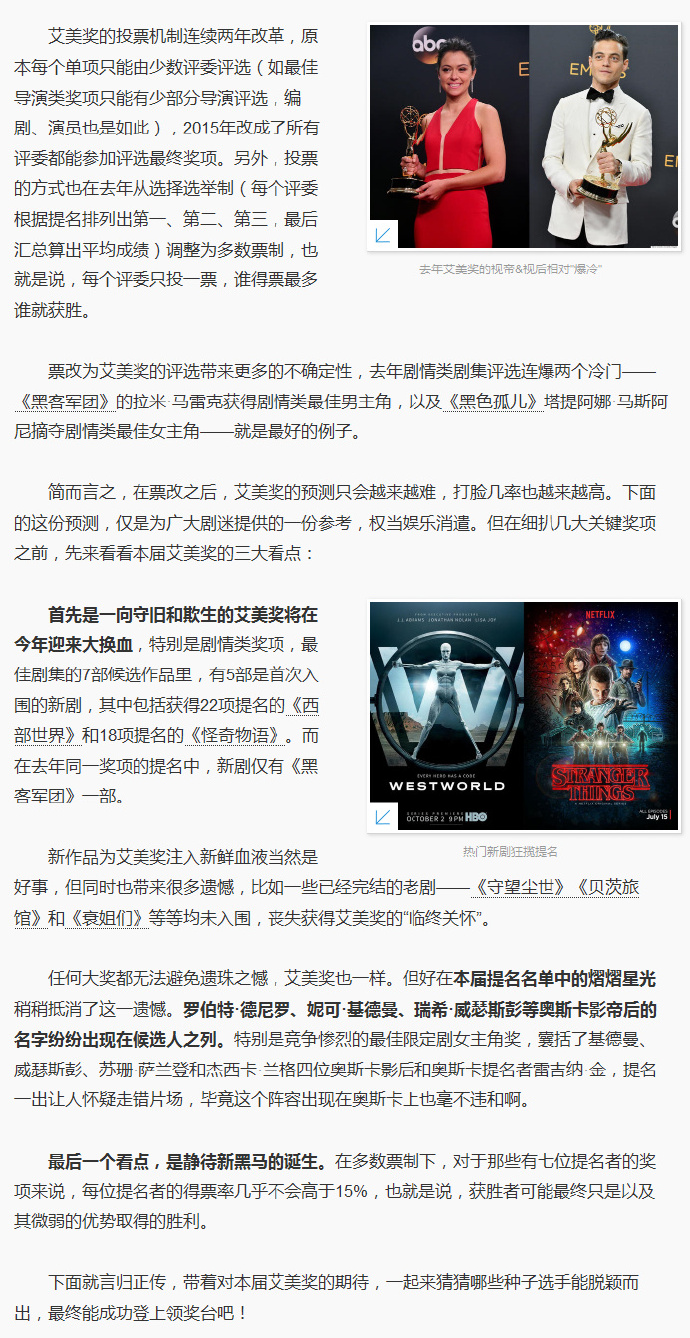 今年《权力的游戏》因播出时间缺席,一向守旧欺生的艾美奖也迎来大换血。限定剧集类也涌入了越来越多的影帝影后们,死亡之组的竞争会相当惨烈…
