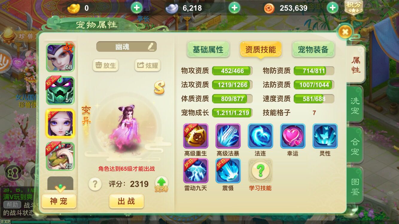 个人建议平民不要碰65的宝宝没有任何用处成长太低,75就淘汰了。