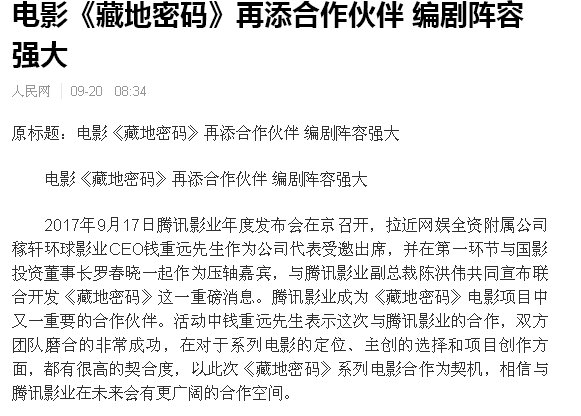 藏地密码系列电影和电视剧的消息