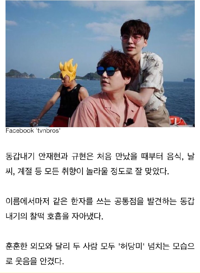 同岁的安宰贤和圭贤从初次见面的时候开始,饮食、天气、季节等所有爱好都惊人的默契。