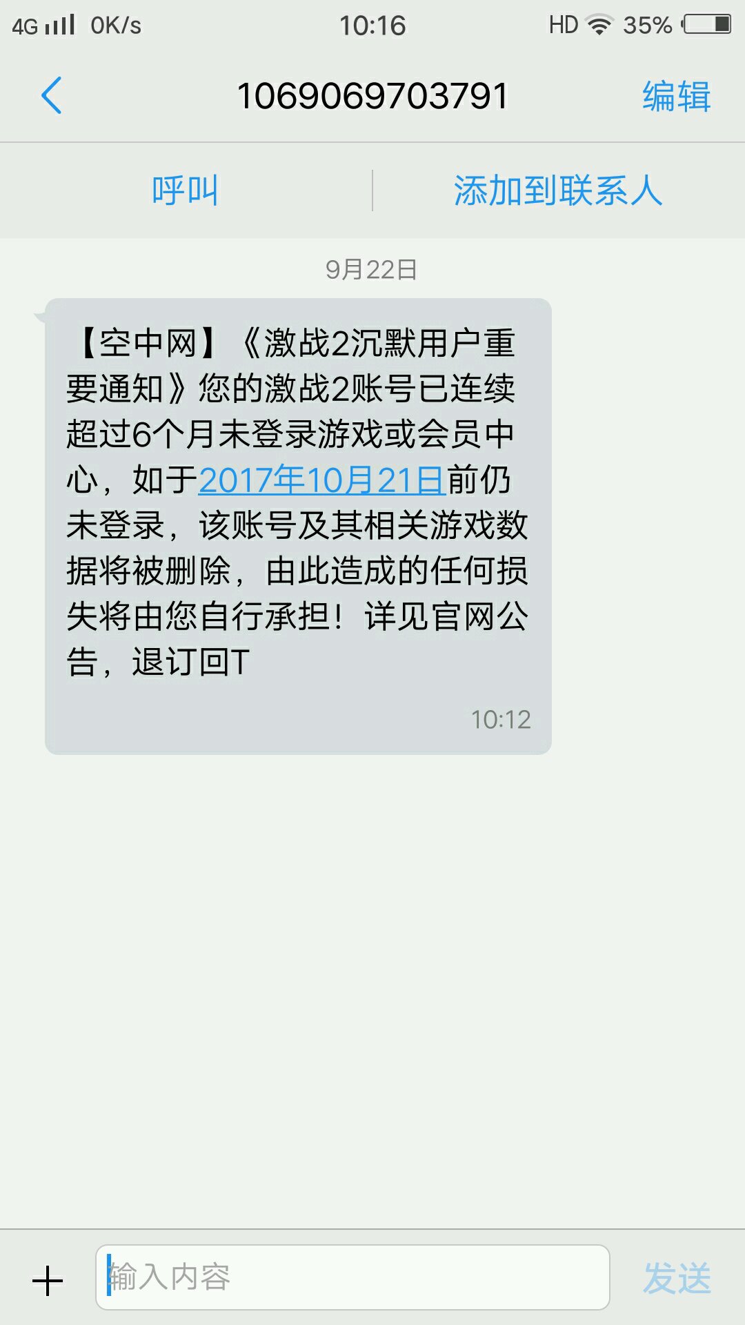 买了398没收到短信
