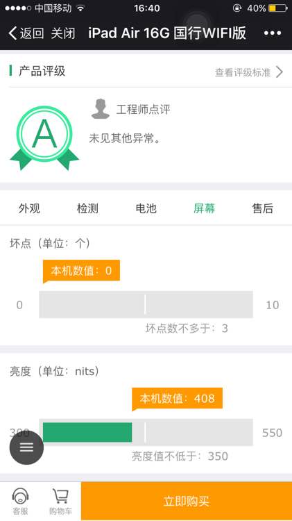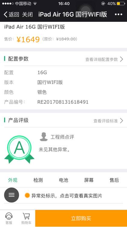仔细检查了,没有划痕坏点,查了序列号,跟机身序列号一致