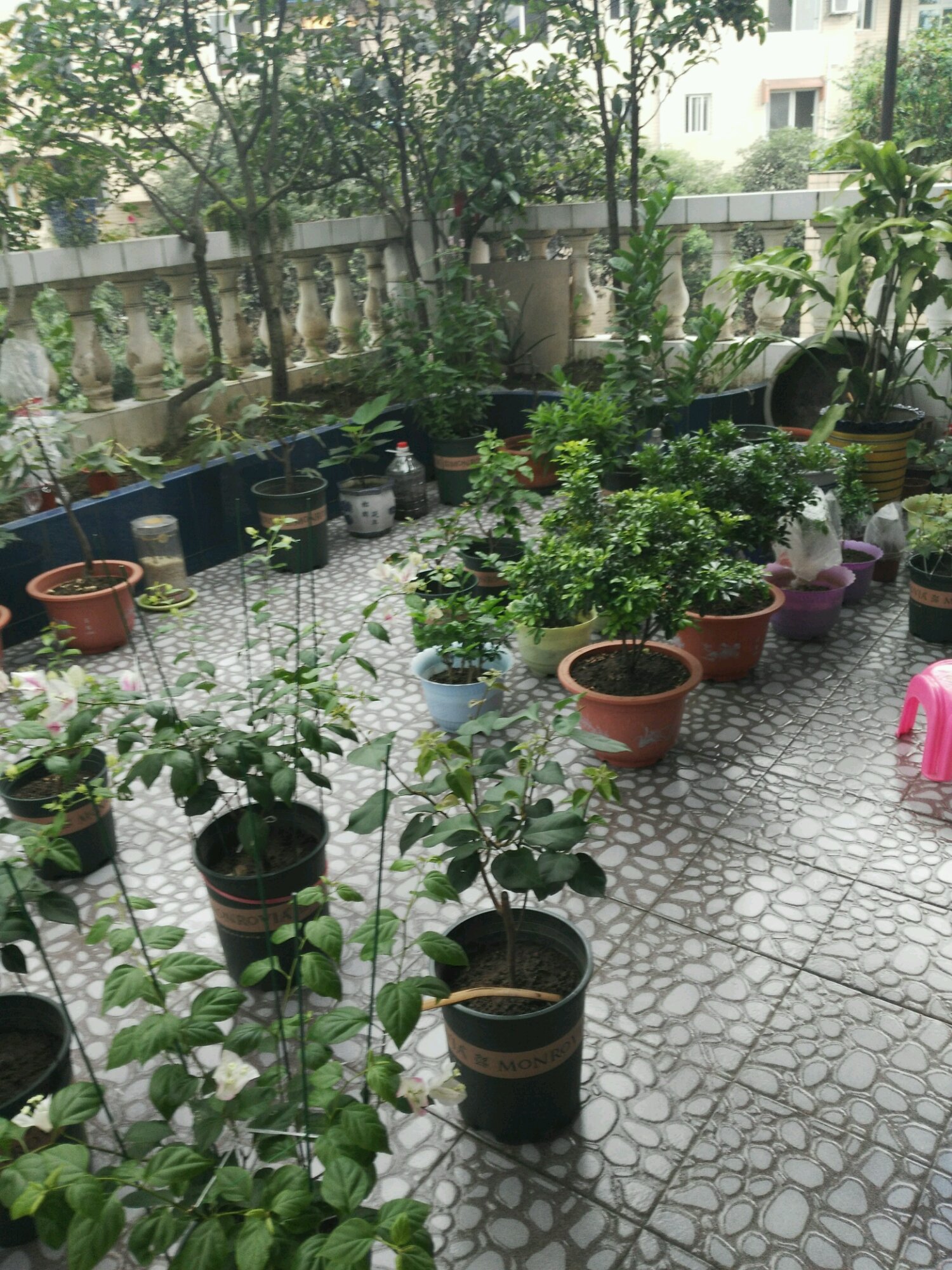 七月份开始栽的三角梅现在口红、广红樱己经开花(花的量很少),金心双色己经现蕾。