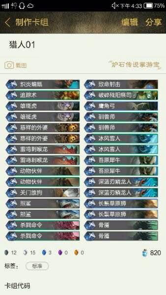 推荐一套难民猎人卡组(1级大佬