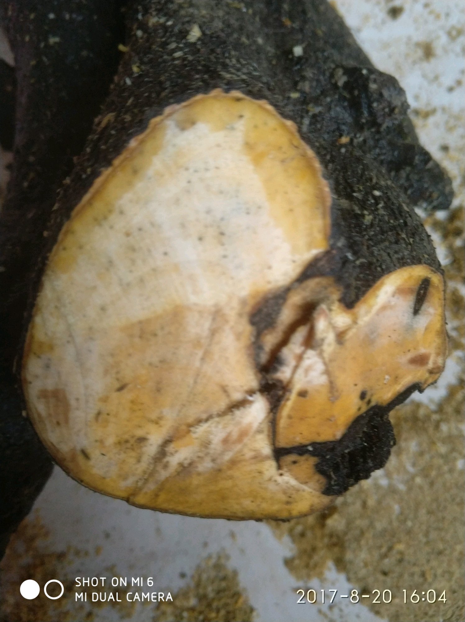生霉了,切了好长都有黑点,一锯子一飘从中间切开了[黑线][黑线]