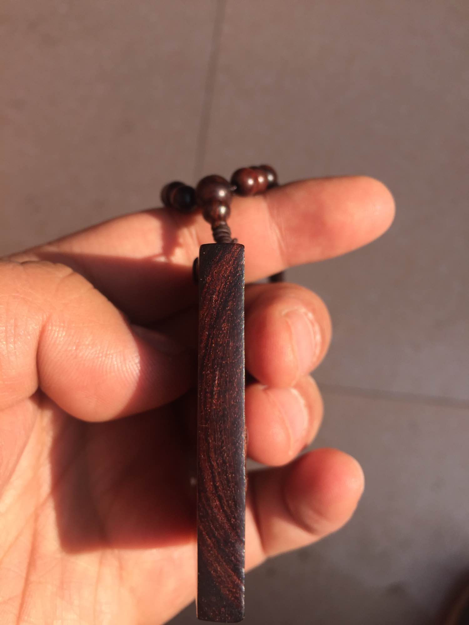 牌子和链子是海南黄花梨的,链子是0.6*108颗,新疆和田籽料一个42克一个10克都是上次去新疆旅游买的,然后2.0*12颗小叶紫檀佛珠买了也有一年多了满金星,海南黄花梨12*1.8珠子玩二年了现在可以上手盘玩,越南黄花梨的5.0健身球,有白皮