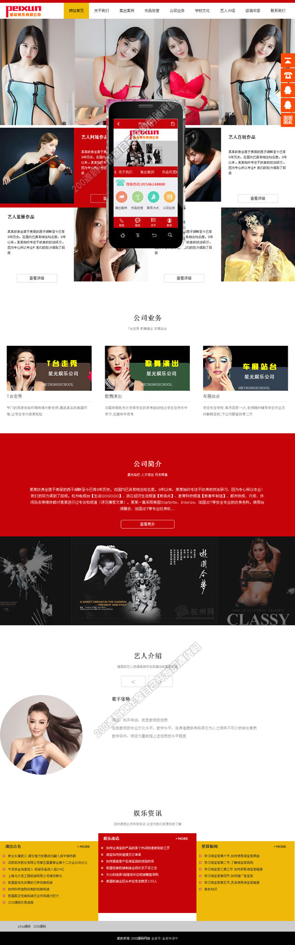 模特娱乐公司建站用的源码