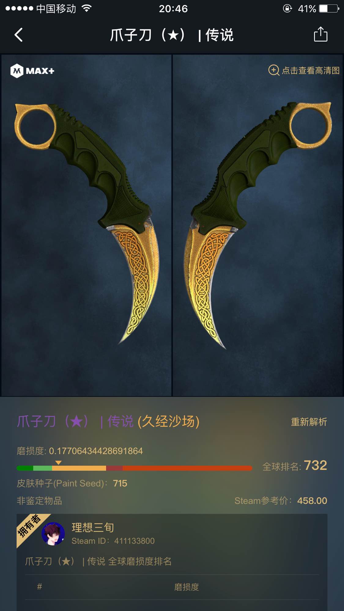 手套小刀可秒