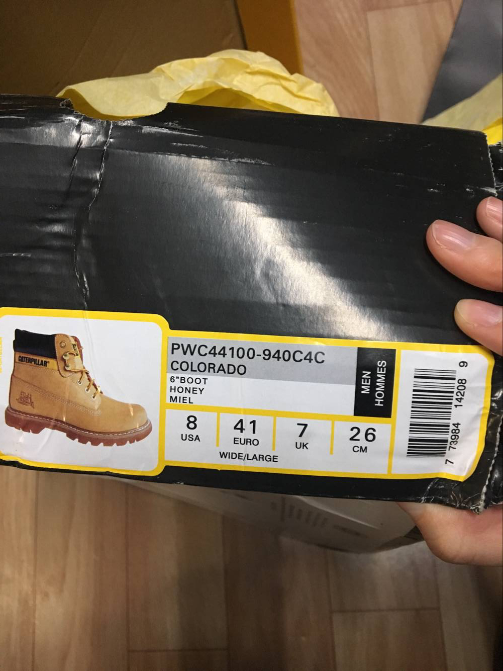 求鉴定 谢谢各位大神专柜正品 代购CAT男鞋高帮水晶底大黄靴