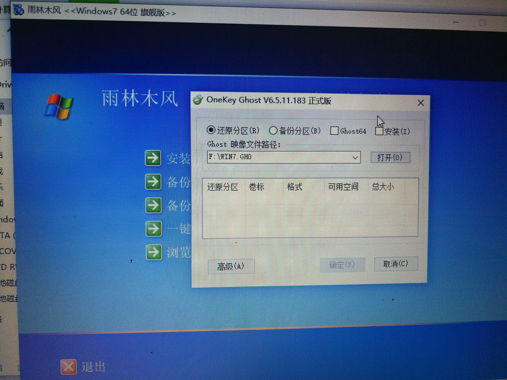 求助求助 求大神指导 用雨林木风想把w10装回w7 可是下头栏目里没法选c盘 求怎么办