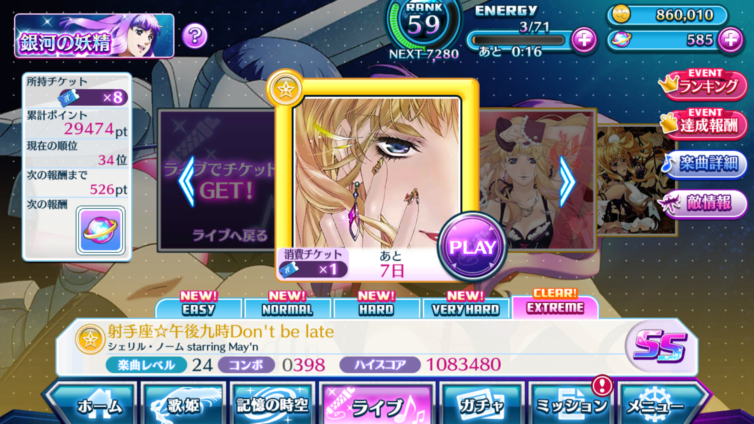 +108-38,中途有一張票打的時候不小心手滑把遊戲關了,還有三局沒進超歌,手疼還是休息會兒吧