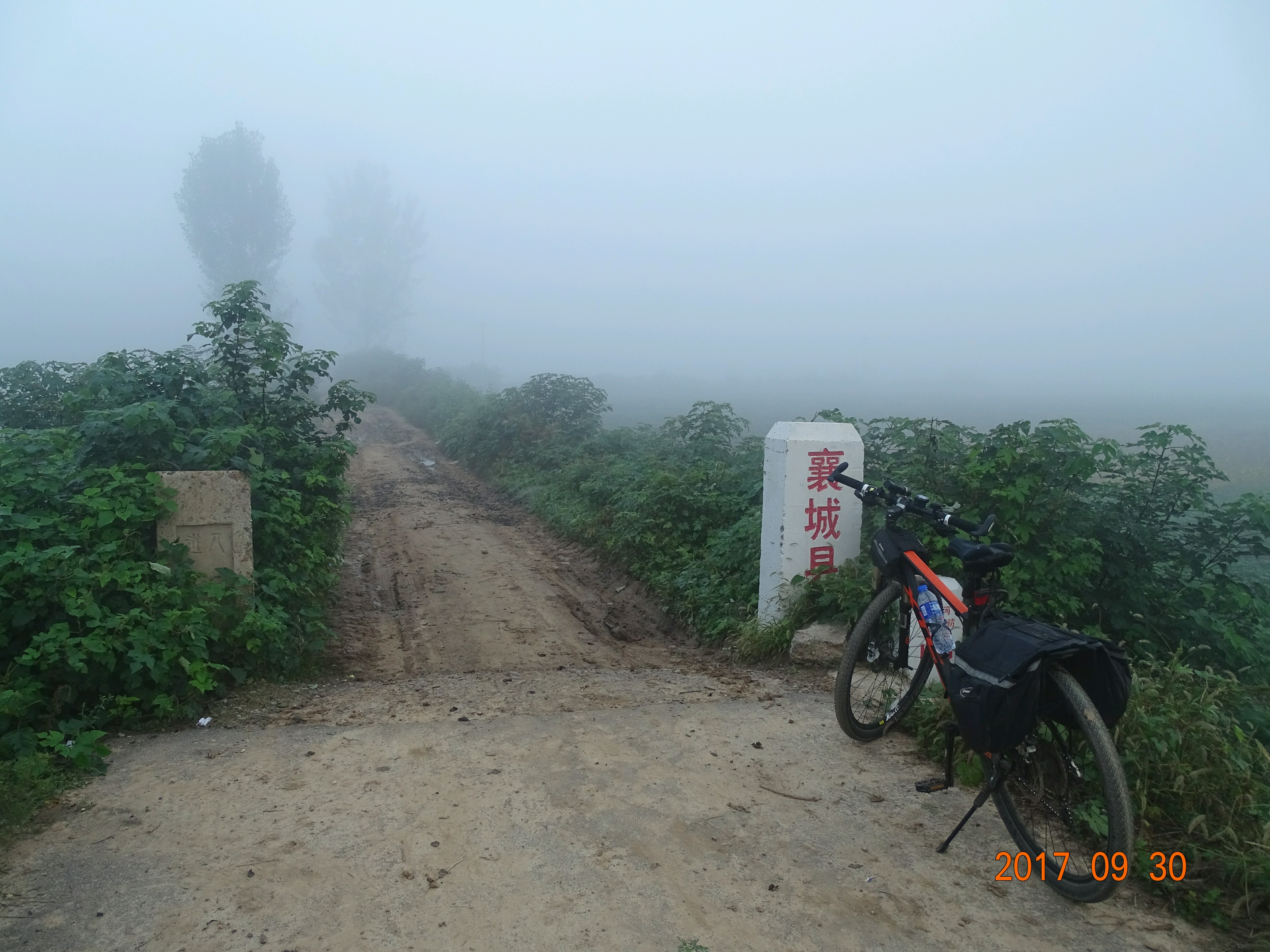 河堤到了两县交界处,郏县境内是土路,襄城县这边是水泥路!