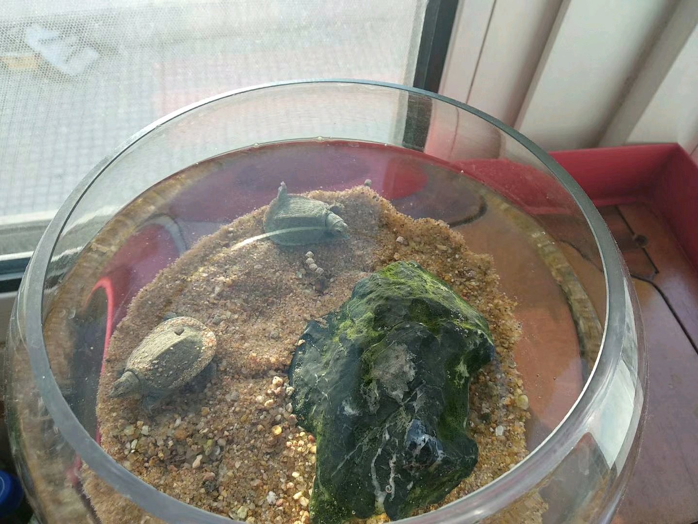 【第五步,冬眠】我的小鳖是冬眠在沙里的,可能有些人用加温过冬,冬眠时,把水抽干,让沙保持湿润,必须要隔段时间喷点水,不然会发生惨案,喷多少取决于你家哪里的干湿度