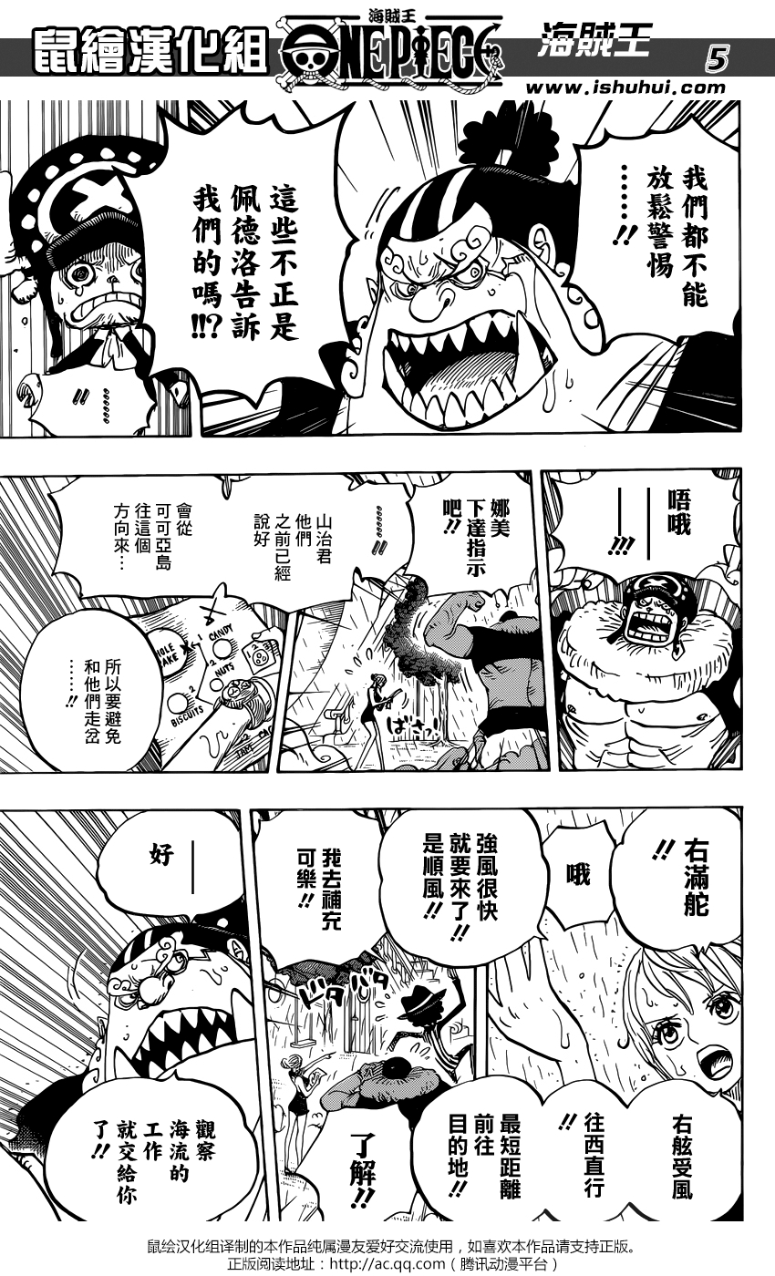 最上翻得不好,但这里姑且不作错误判定。应该是甚平大喊,【都别放松警惕,佩德洛不是这么说的吗!】这里结合上一页最后一句,是甚平对一行人的如同警钟的一席话,你们的佩德洛不是说了直到离开大妈的地盘都别放松紧惕的吗!翻译成我们就错了。最下的错译【了解】,了解什么呢,正确为【遵命/收到/领命/明白】都可以。还有甚平的话翻得直接错的离谱,【好,观察海流的工作就交给你了】,这句正确为【好,那老夫来观察海流的动向】