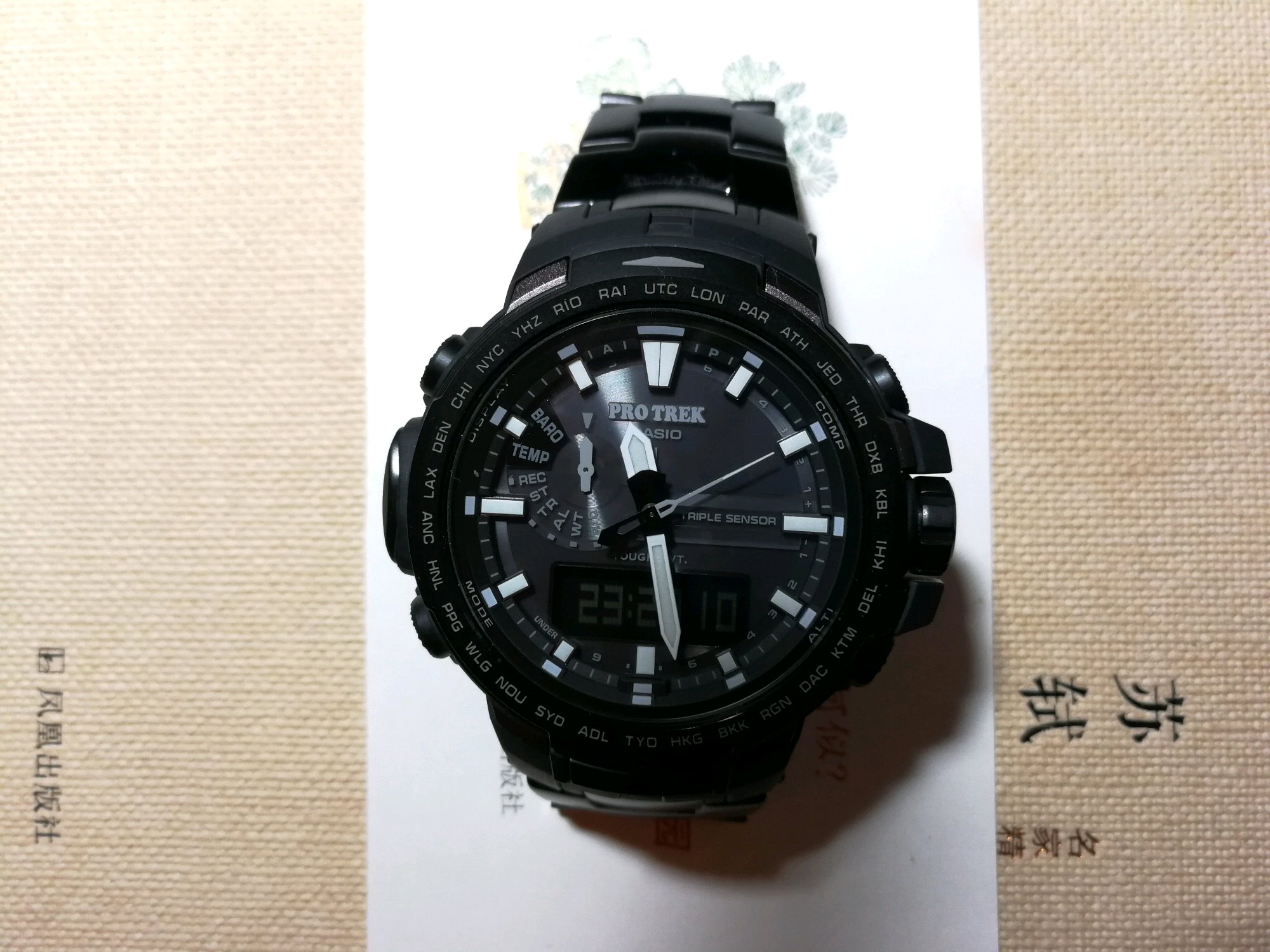 石英表多多少少都会有点这个现象,秒针不能完美对齐12点的时标。PRW-6100有指针对齐校正功能,可以按照说明书进行操作。