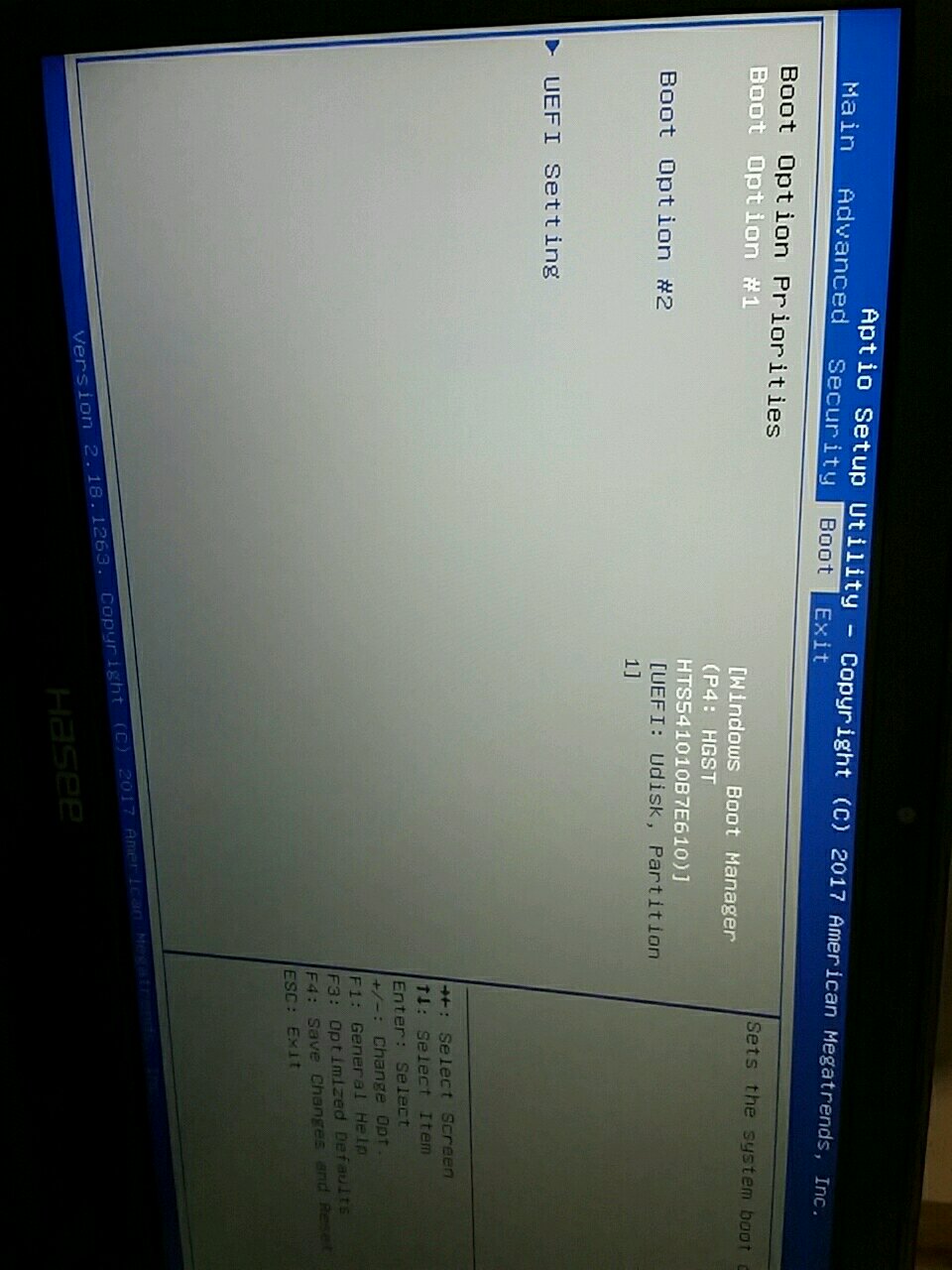 接下来进BIOS无法截图,由手机拍摄。