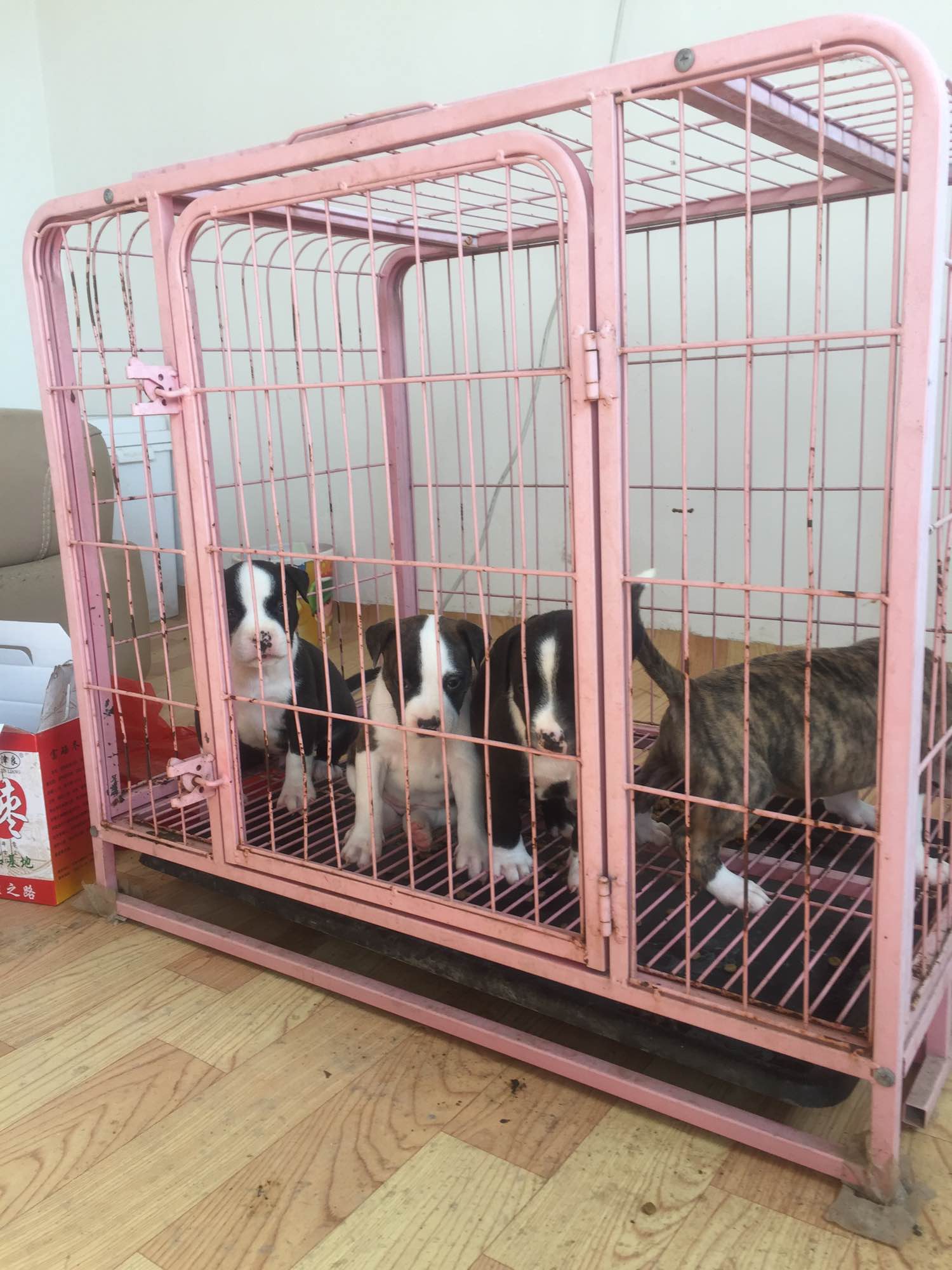 斯塔福三公一母 三虎皮 一黑白 可截耳 包两针疫苗 9月一号出生 可抱窝 狗在天津 可看父母 喜欢的联系 价格合理
