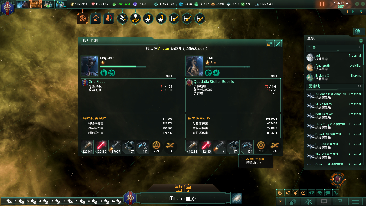 另外,还有一个细节,那就是这两次我都是选择从堕落的后方跳入,直接近距离接触战斗的,结果我方的点防几乎不起作用和战斗机迷之消失,敌方飞机长驱直入。