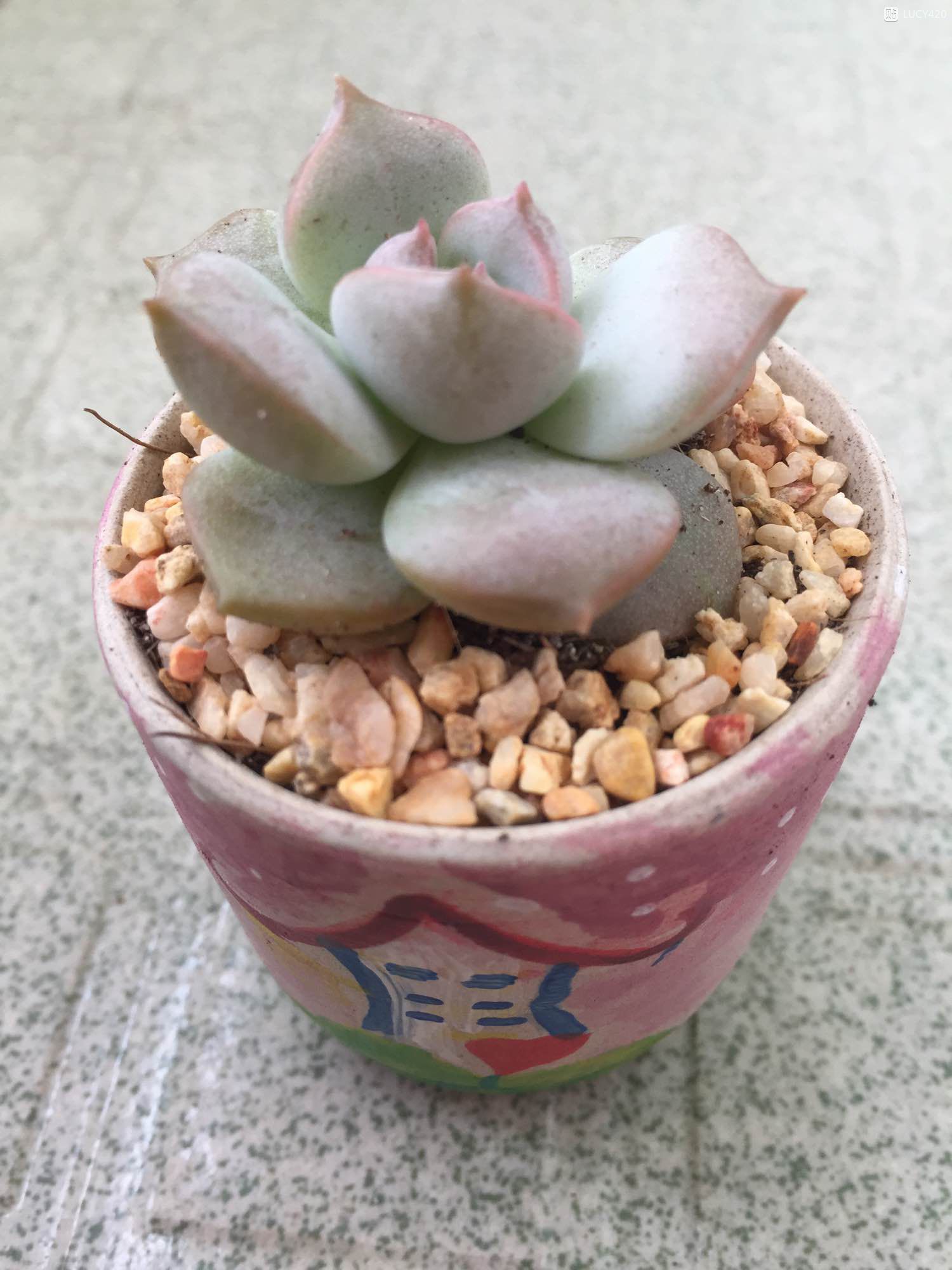 一年了,给肉肉松松土,换新盘子。虽然肉肉颜值不怎样,但是毕竟是陪伴我度过了一段伤心的日子,而且顽强地逃过了各种干旱,水涝,碰伤,咬伤,连根拔起的虐待,值得被善待!话说,白牡丹晾了两天,自然变色