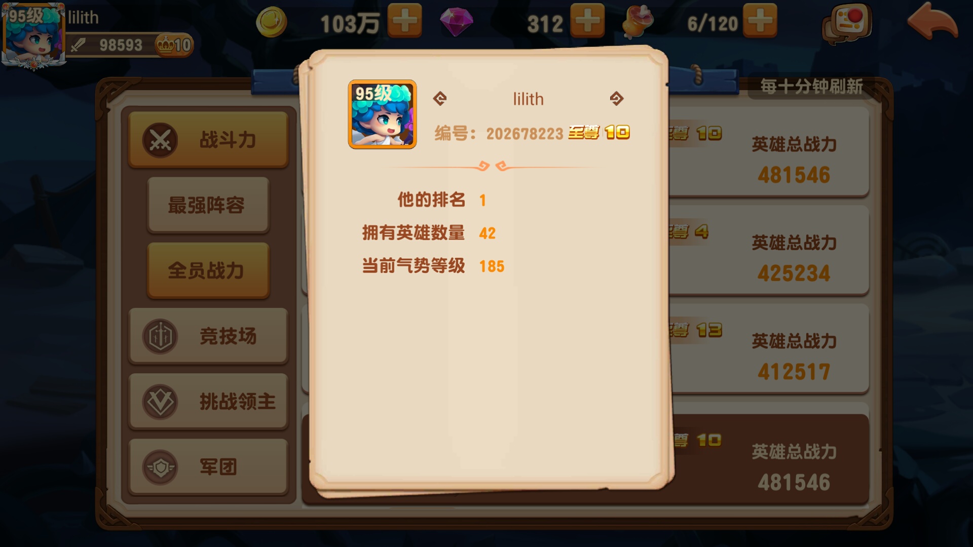 其实第一名应该是大R的,他们不玩了,我一点点赶超熬了到第一