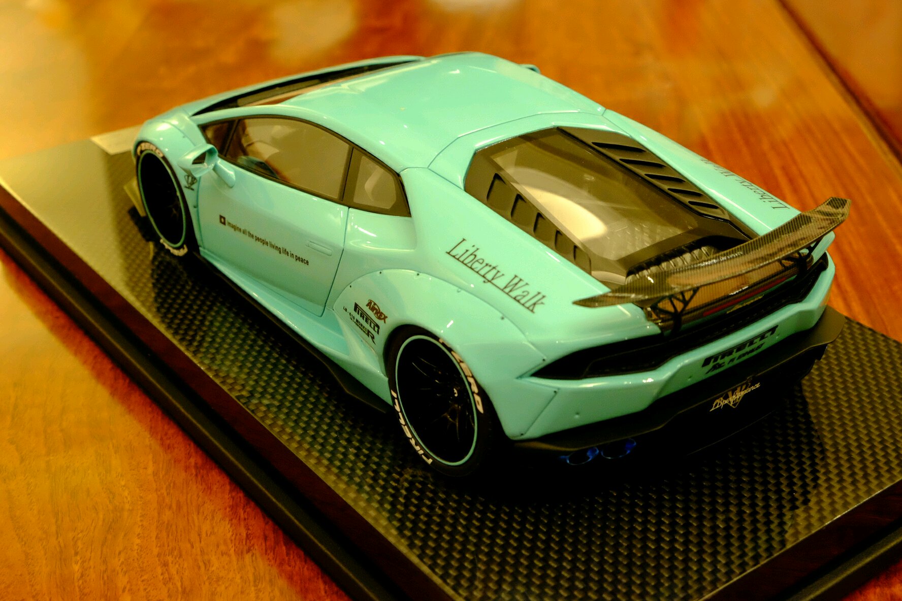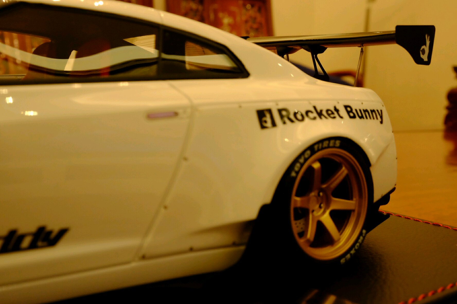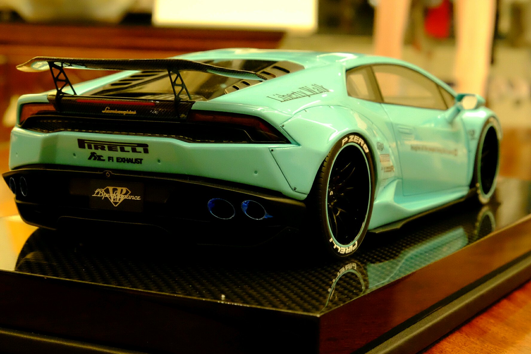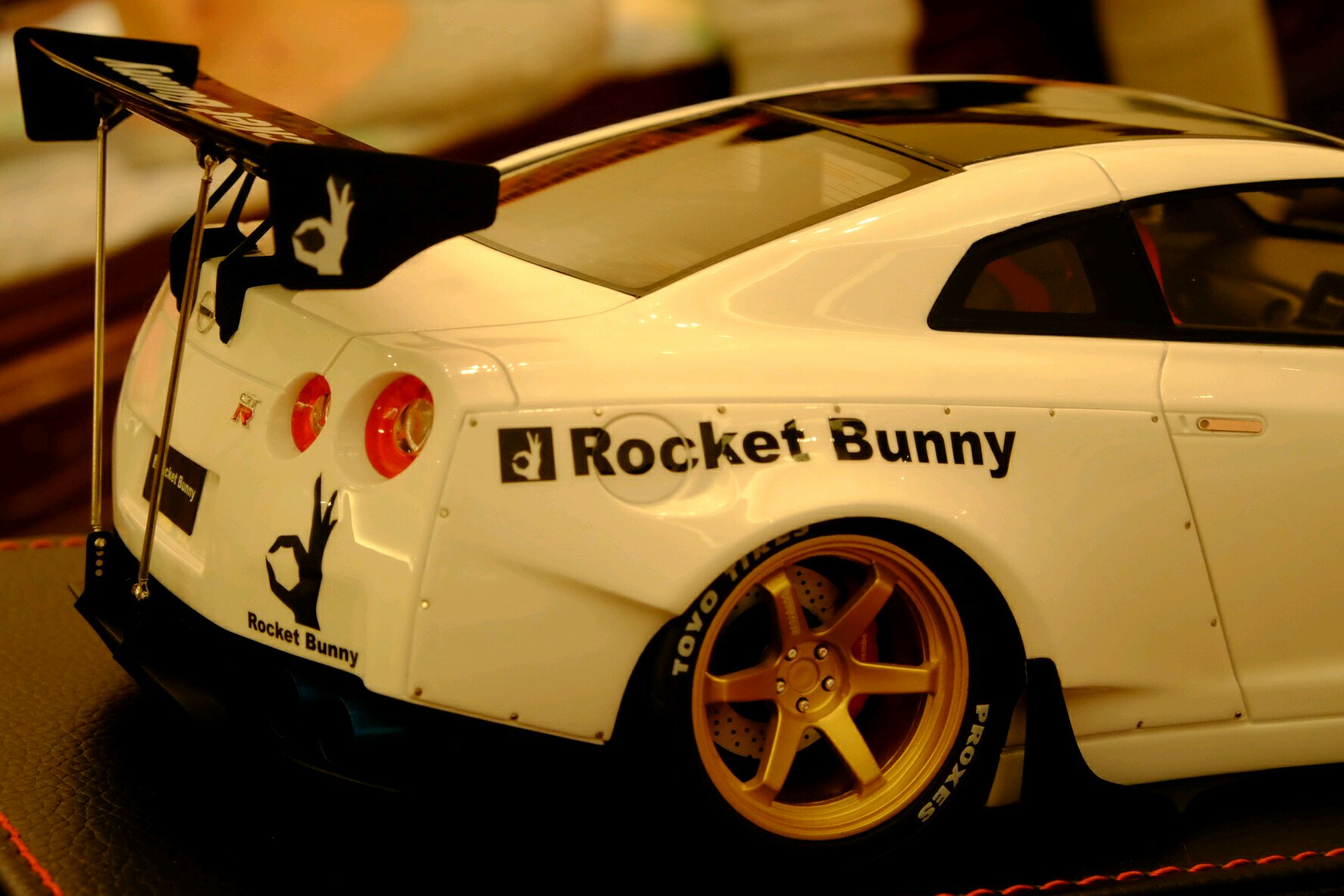 三只极赋视觉冲击力的车款一映入眼帘便令我怦然心动。其实,也读过许多吧友的赏鉴,这次近距离亲见果被这股全球风潮洗礼了。第一只是One model 出品的Liberty Walk改装版本,威名赫赫的尼桑GT-R35,粉蓝色的外观,宽体低趴风范,毫不掩饰炫耀这她的调性。而另一部同为改装版本东瀛战神,白色GT-R35,是由Make up 出品的IDEA系列火箭兔Rocket Bunny ,从头至脚的一身行头就是要突兀、要冲击、要挑衅,绝对是霸气宣泄。太被吸引住了。最后一台,也是我认为此三者中最足味视觉冲击感的Liberty Walk 出品的限量10部的宽体版粉蓝色小牛P610,尖锐地摧枯拉朽席卷一切。此外,这款车拿到了一个非常好的号码,还要实实在在地感谢此方宝地的故交,一位模界的博禹老友啦