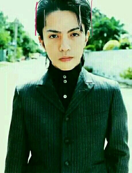 细看15楼的图,大家会发现,比起标准鹅蛋脸来说,Hyde的额头过于窄,不算是标准的鹅蛋脸。但较宽的鬓角,却是Hyde脸上的另一点睛之笔