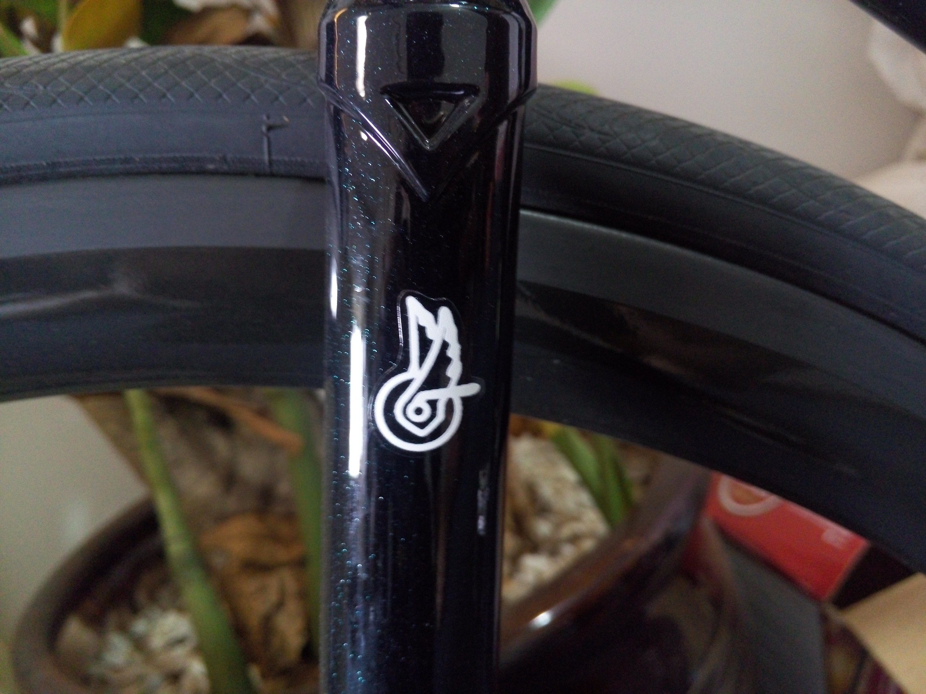 架子说过了,说说前叉吧,原装的平肩叉是好看,涂装也跟车架一样很和谐,但是不知道为啥摇车鹅颈会轻微晃动,还有嘎吱嘎吱的声音,换了好几个鹅颈还是没有解决,所以索性就换叉喽。在某宝找了一万年都没有入眼的一英寸无牙叉(wound up太贵),后来得知可以找海啸兰总买一支海啸公路架的铬钼钢前叉来用,入了一根亮黑色,叉肩是斜的,可以说更气动吧=。=。这根叉的外形、做工、漆水、涂装都挺满意的,给国产品牌点赞!既然换了无牙叉,那么碗组也要换一英寸无牙的,选择也是不多,入了airwalk&17T合作推出的银色碗组(就银色没有airwalk鹰头标和17T标,怨念*1)。碗组垫圈是10+10+5+2四层25.4mm,表面太粗糙,自己抛光。把立的话,强迫症患者一定要-17°,还要银色,然后前叉安装口25.4实在找不到,只好加个变径套,垫圈外径31.8mm左右,跟把立安装处外径差不多,看起来挺和谐的。把立螺丝升级成S-PARTS钛合金螺丝,永不生锈,岂不美哉。车把还是用最心水nitto rb010,令人沉醉的微下沉弧线和微内弯的角度,实在是经典。把带用的是cinelli mash盾标,手感不错,耐用度有待考验吧。把组的最后一样东西就是碗组盖了,碗组盖之于无牙车如同方向盘之于汽车,看着舒服,心情也舒畅。碗组盖螺丝也配了M6*30的沉头钛螺丝。