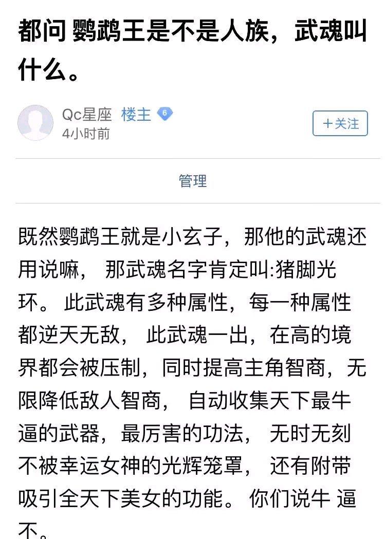 小编:老铁很稳,哈哈哈。不过,这个是每个主角都有的武魂吧?不然怎么好好的装X呢~你说是吧。