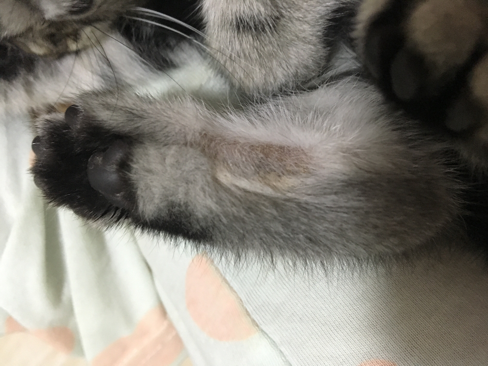 一个半月的小美短、买回来4天后发现后腿秃了一块