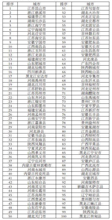 2017年全国中小城市投资潜力百强县市(全国投资潜力百强县市)