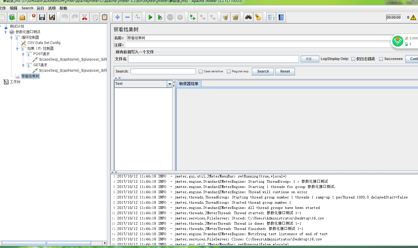 用jmete进行参数化时r察看结果树里没有任何的数据是什么回事?