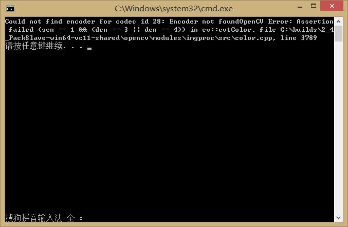想用的保存的语句是processor.setOutput ("F:\\vc\\mouse\\mouse1111.mp4");,就报错,不保存的时候播放处理好的视频很正常,用的是processor.displayOutput ("Output Frame");,现在这个也放不出来,百度出来是frame是3通道或者4通道,不知道怎么设置,这个=8有问题吗?谢谢