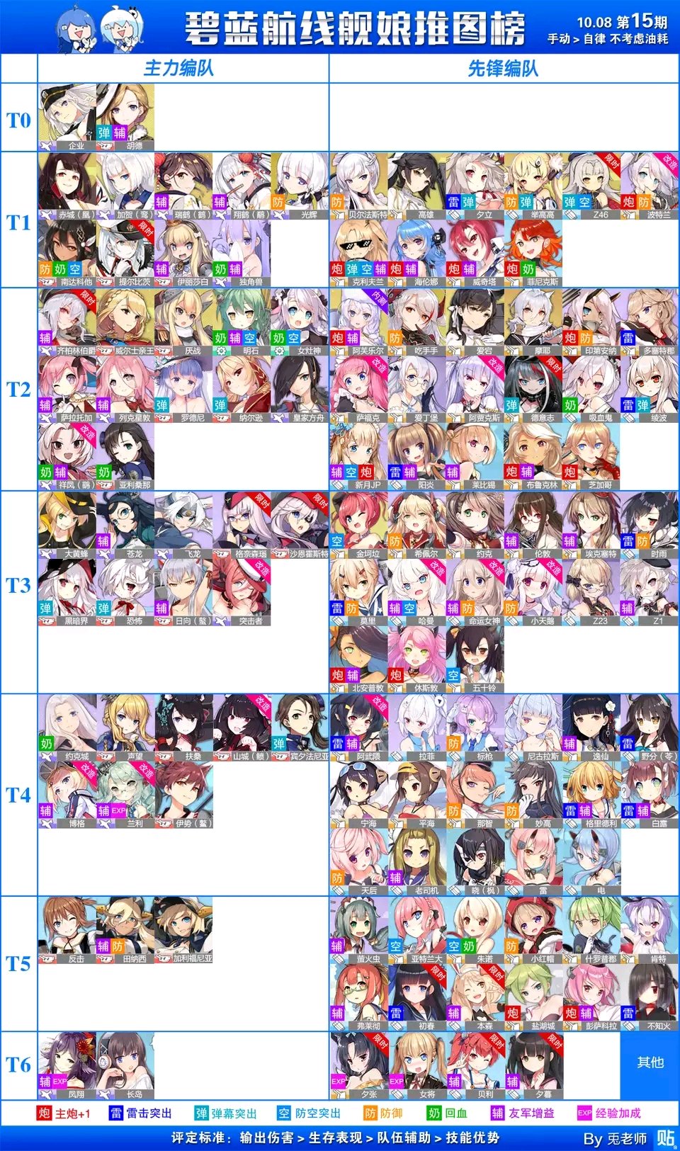后排:优先练,凰,鸾,这两个在3-4,慢慢捞,然后光辉,企业,独角兽,这些是航母,战列战巡,伊丽莎白,厌战,胡德